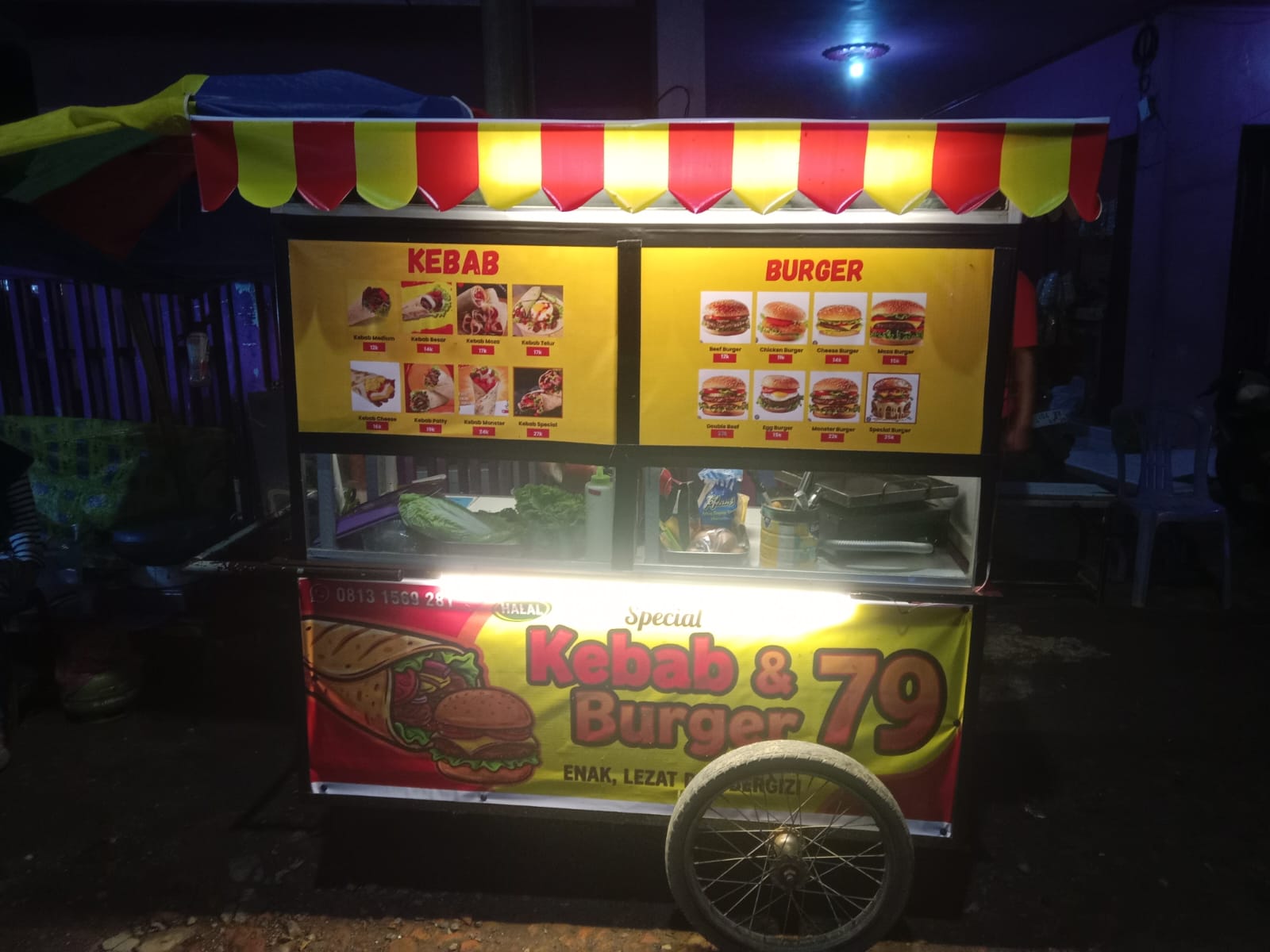 Stand gerobak burger milik Anjar Prasasti Rabbana di kawasan Pagandon, Kadipaten, Majalengka, Jawa Barat.