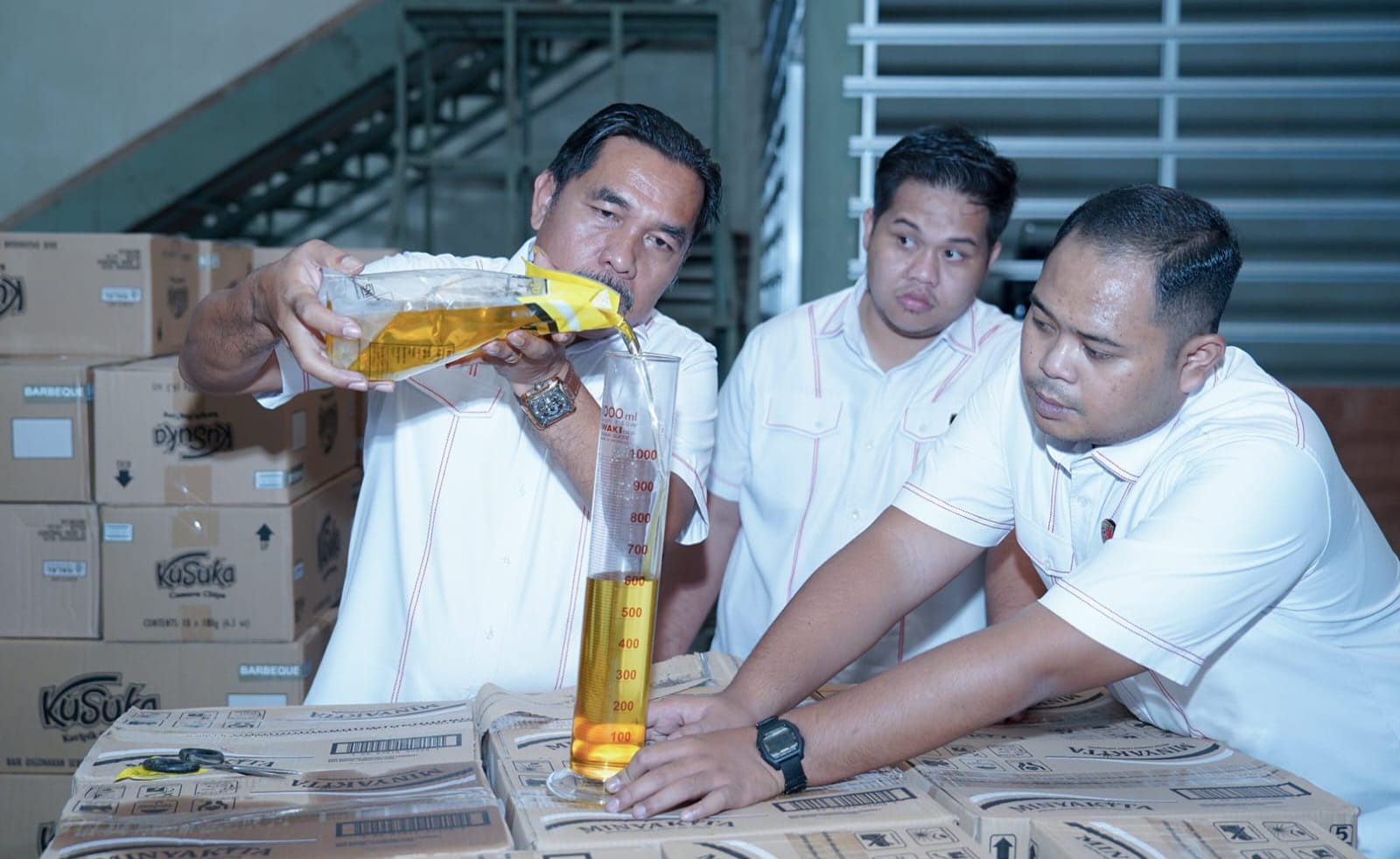 Hasil pengecekan sementara menunjukkan bahwa kemasan dan takaran minyak goreng merek Minyakita di pergudangan tersebut telah sesuai dengan standar dan dijual sesuai harga eceran tertinggi (HET) yang telah ditetapkan pemerintah yaitu Rp. 15.700,-.