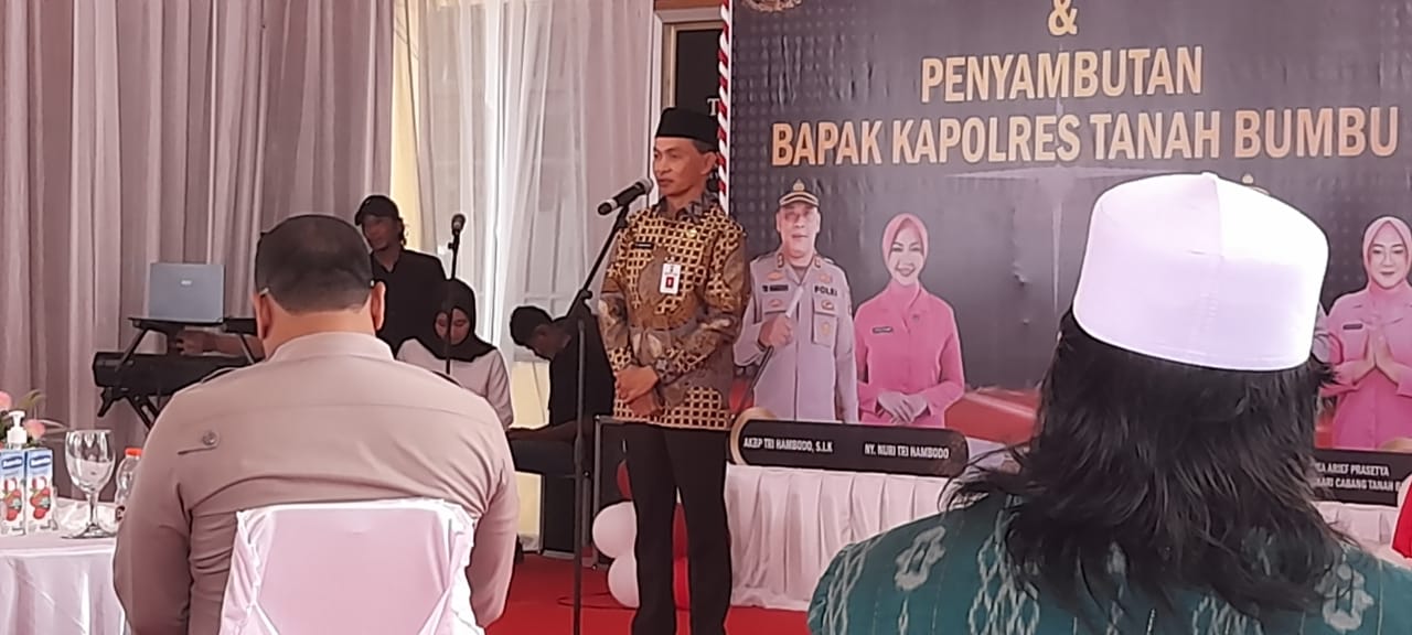 Sekretaris Daerah Tanah Bumbu, H. Ambo Sakka saat menyampaikan sambutan di Pendopo Polres Tanah Bumbu.