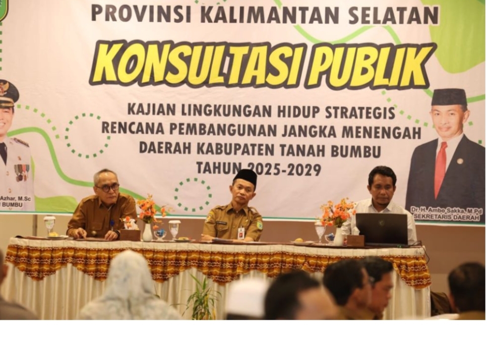 Konsultasi publik ini juga menghadirkan narasumber dari ULM Banjarmasin, tenaga ahli penyusunan KLHS RPJMD Tanbu, Kepala DLH Tanbu Rahmad Pratopo Udoyo, serta perwakilan dari berbagai kecamatan se-Kabupaten Tanah Bumbu.