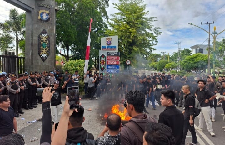 Sempat Ricuh, Aksi Massa Aliansi Barikade di Mapolda Kalteng