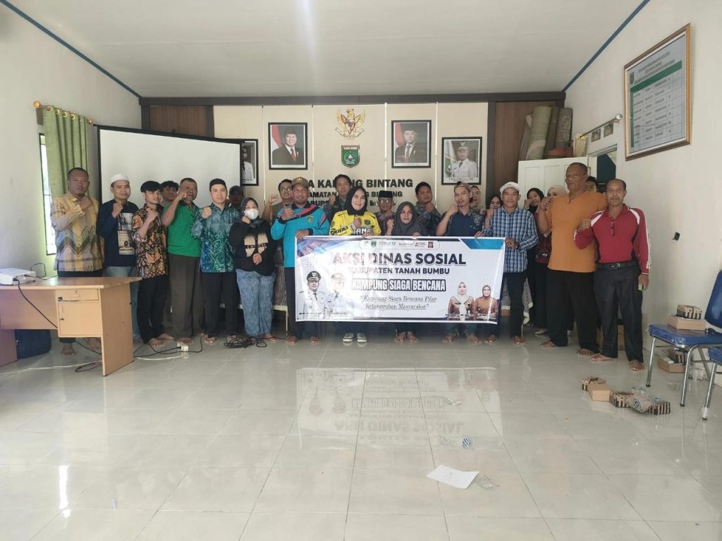 BATULICIN — Pemerintah Kabupaten Tanah Bumbu terus memperkuat kesiapsiagaan masyarakat menghadapi potensi bencana. Melalui Dinas Sosial, kegiatan Sosialisasi Kampung Siaga Bencana (KSB) kembali digelar dengan tema “Kampung Siaga Bencana Pilar Ketangguhan Masyarakat” di Kantor Desa Karang Bintang, Kecamatan Karang Bintang, Jumat (14/11/2025).