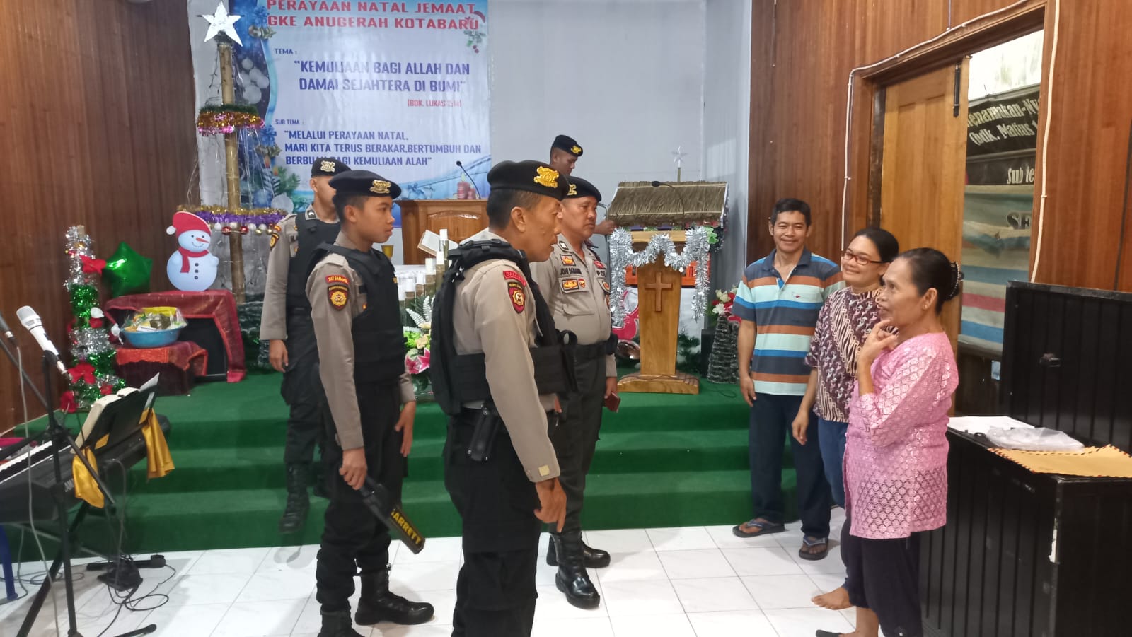 Kotabaru – Jelang perayaan Natal tahun 2023, Polres Kotabaru aktif melakukan sterilisasi sejumlah gereja ada di Kabupaten Kotabaru, Minggu (24/12/2023).