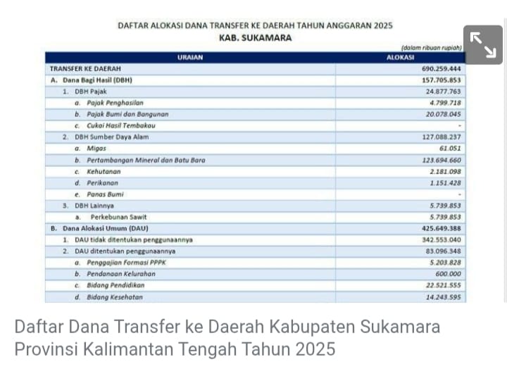Sukamara – Pj. Bupati Sukamara H. Rendy Lesmana mengungkapkan bahwa Kabupaten Sukamara akan menerima dana transfer ke daerah sebesar Rp690,25 miliar pada tahun anggaran 2025.