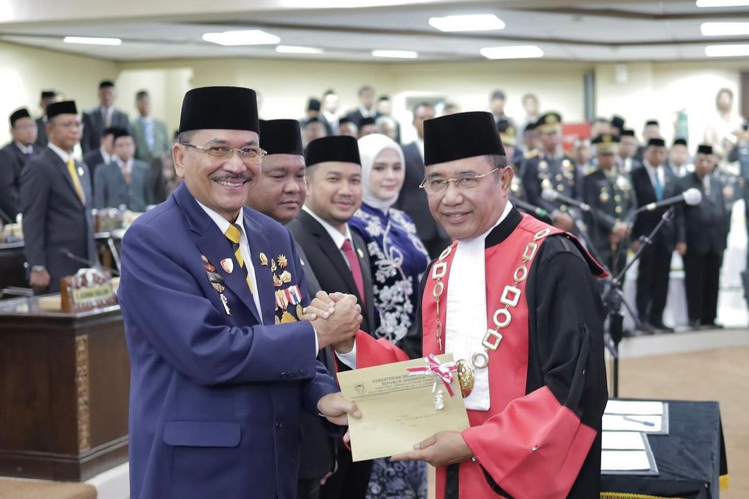Gubernur Kalsel, Sahbirin Noor melalui Staf Ahli Bidang Ekonomi dan Pembangunan, Agus Dyan Nur menyampaikan pengucapan sumpah/janji Pimpinan DPRD Provinsi Kalsel di ruang rapat Paripurna, Banjarmasin. Senin, (7/10/2024).