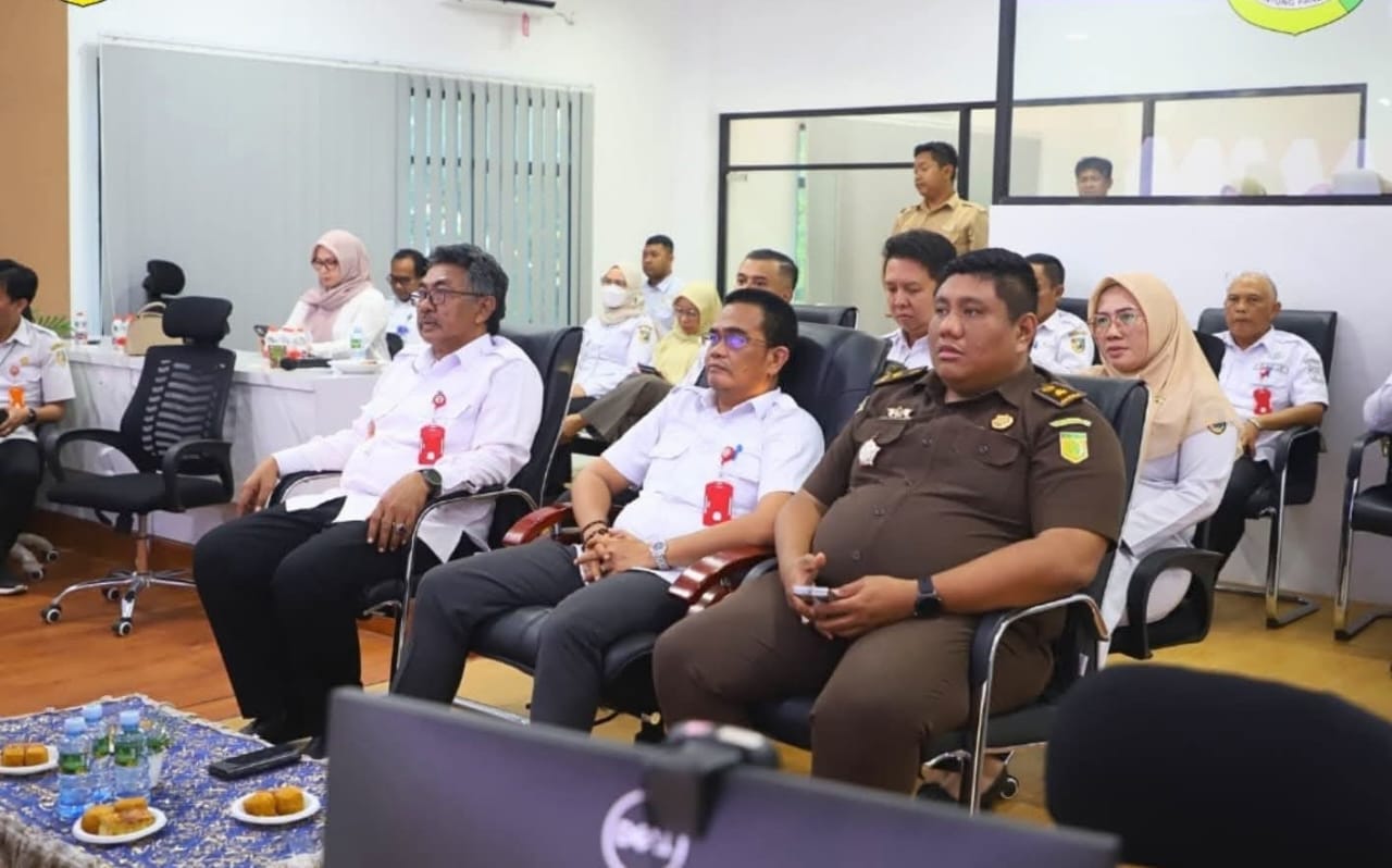 Pj Sekda Tala, Ismail Fahmi, bersama jajaran SKPD dan Camat menyaksikan peluncuran logo HUT ke-80 RI secara daring dari Gedung Command Center, Rabu (23/7/2025).