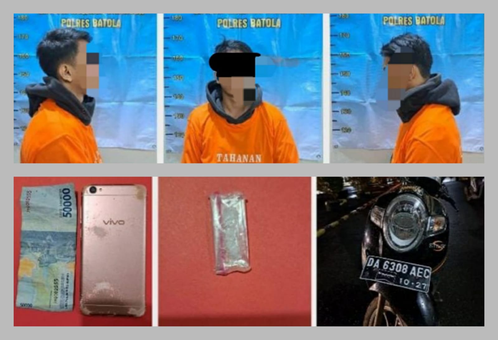 Adapun barang bukti yang berhasil diamankan yakni, satu paket sabu seberat 0,12 gram, uang tunai Rp 50 ribu, HP merek Vivo Y55 dan Motor Honda Scoopy warna hitam nopol DA 6308 AEC.