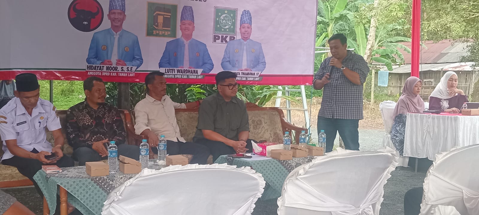 Hidayat Noor S, SE dari PDI Perjuangan, Lutfi Wardana dari PPP, dan Ganti Binata Tanambunan dari PKB hadir bersama—sebuah pemandangan yang jarang terlihat ketika tiga partai berbeda turun dalam satu forum yang sama, namun dengan tujuan yang sejalan: mendengarkan warga.