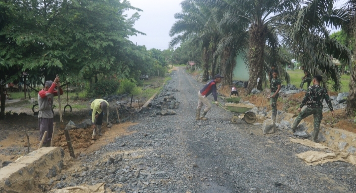 Tanah Bumbu — Satuan Tugas TNI Manunggal Membangun Desa (TMMD) ke-126 Kodim 1022/Tanah Bumbu terus menunjukkan progres signifikan dalam pembangunan jalan penghubung di Desa Rejosari, Kecamatan Mantewe. Hingga Senin (27/10/2025), pekerjaan pondasi kanan dan kiri jalan hampir rampung dengan capaian sekitar 97 persen.