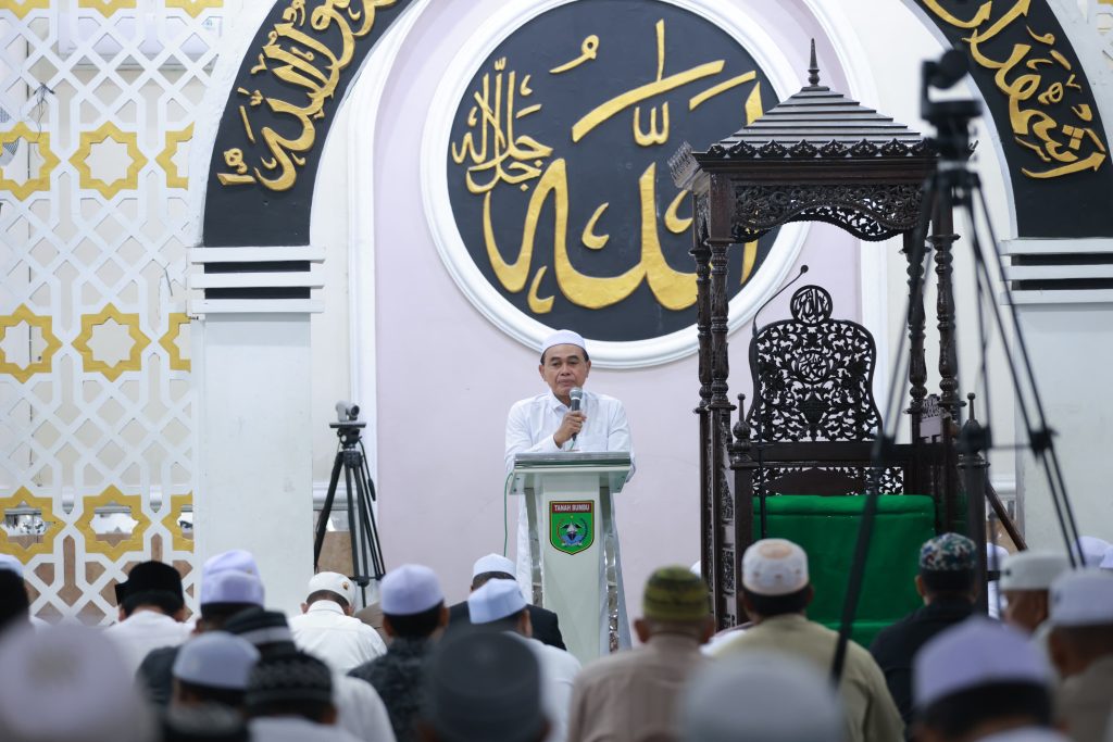 Bupati Tanah Bumbu, Zairullah Azhar saat Menyampaikan Sambutannya di Masjid Masjid Darul Azhar
