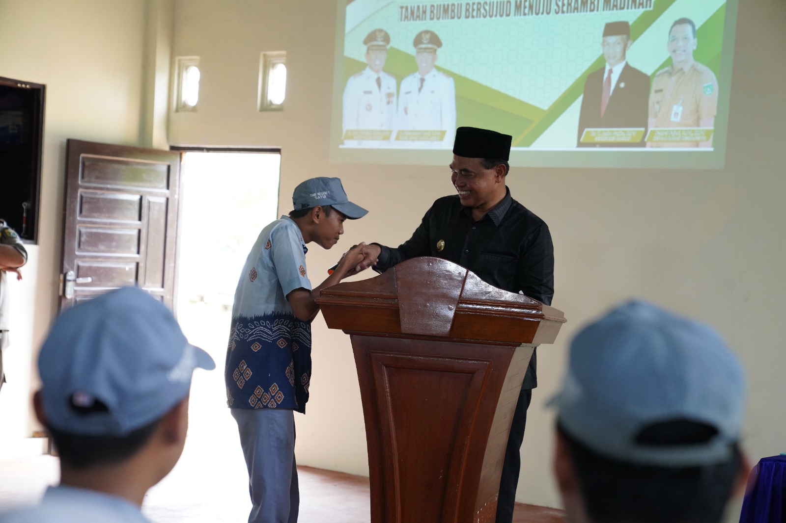 Bupati Tanah Bumbu, HM. Zairullah Azhar, saat disalami oleh pelajar Sekolah Menengah Atas (SLTA).
